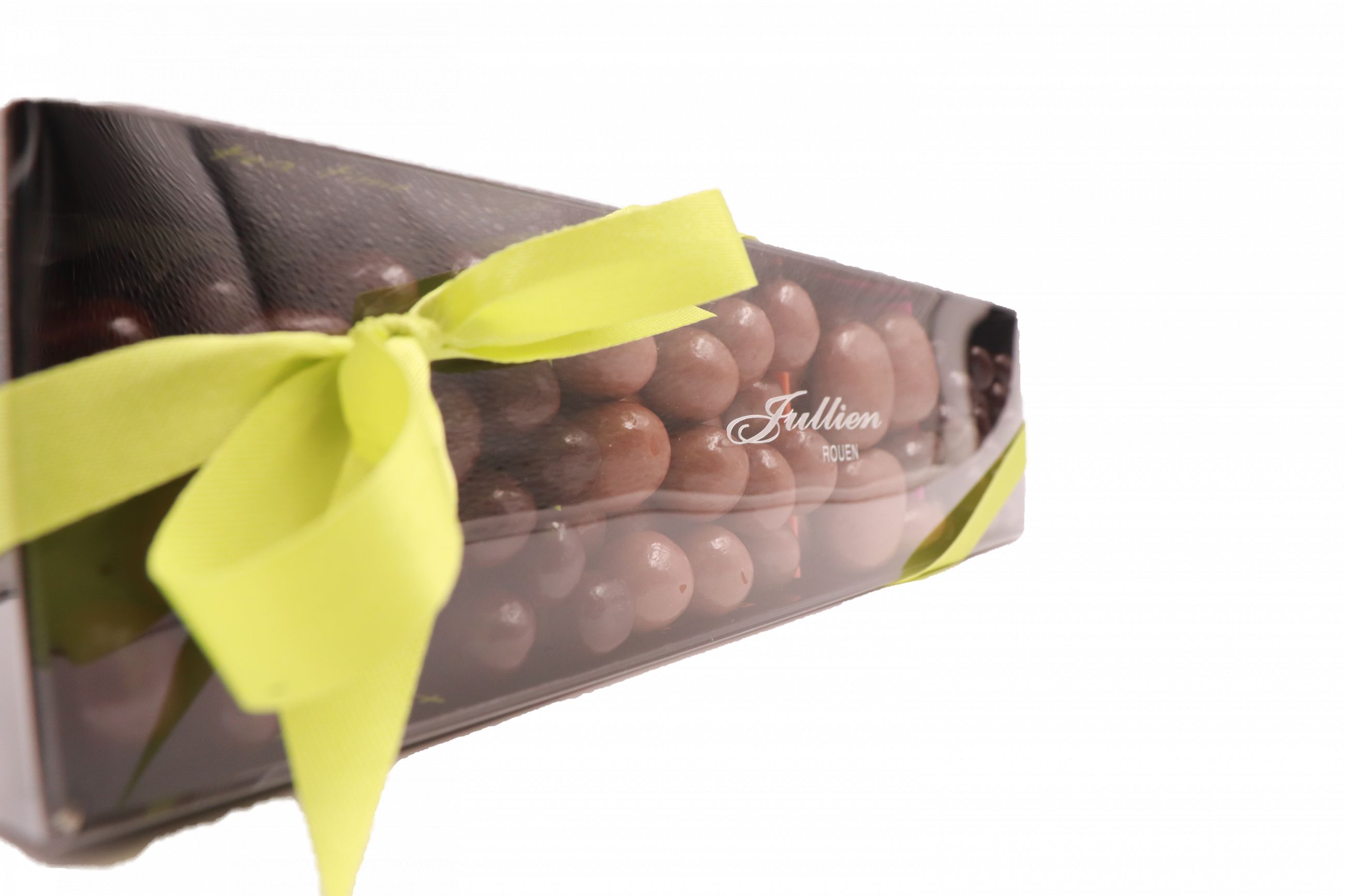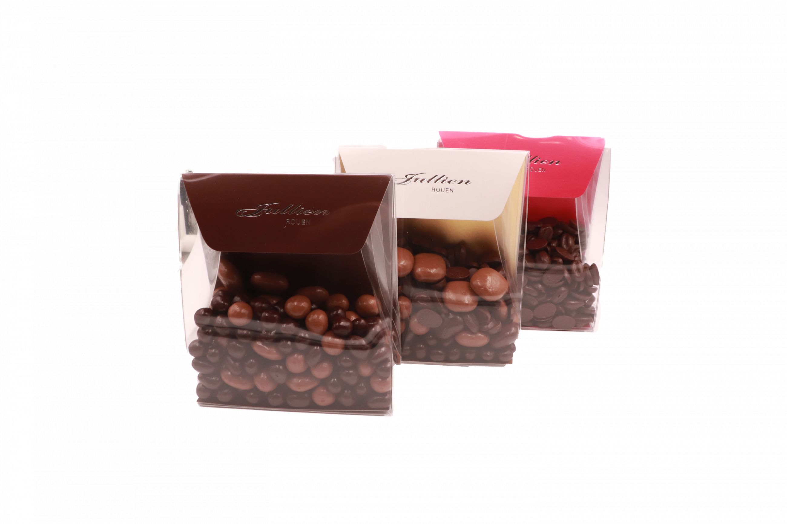 ConfiseriesUn petit cadeau à faire, un petit creux à satistaire ?? Retrouvez nos petites gourmandises telles que des carrés de nougatine enrobés de chocolat au lait ou chocolat noir, des petits cubes d'oranges confites enrobées de chocolat noir, des grains de café, des billes de céréales soufflées enrobées de chocolat noir, lait ou goût framboise ..