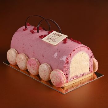 NoëlSorbet mangue et framboise avec un cœur de meringue fondante.