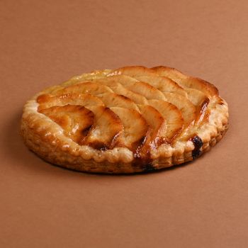 Pâte feuilletée au beurre "Echiré", garnie d'une compotée de pommes aux saveurs de miel toutes fleurs et canne à sucre, recouverte d'une crème chiboust caramélisée.