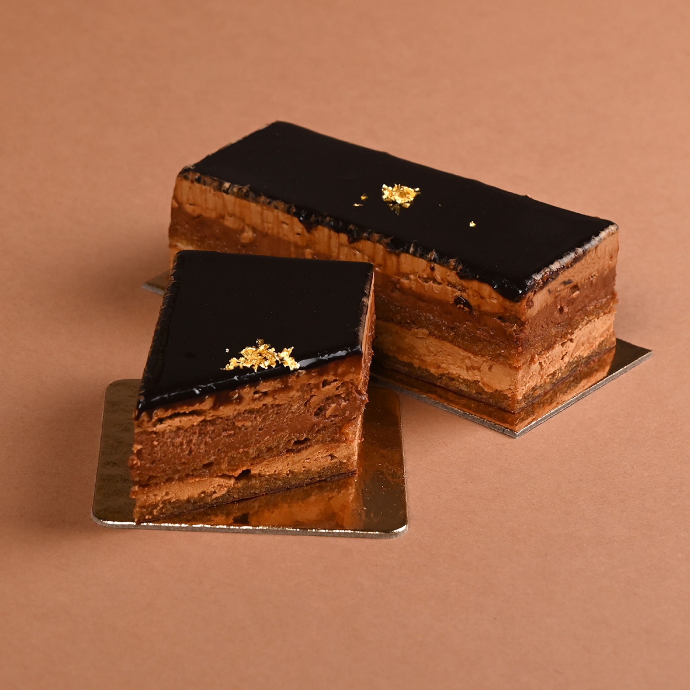 PâtisseriesGrand classique de la pâtisserie Française, l'opéra est composé d'un biscuit joconde aux amandes, d'une crème au beurre "Echiré" parfumée au café du Guatemala et d'une ganache chocolat noir 70% de cacao.